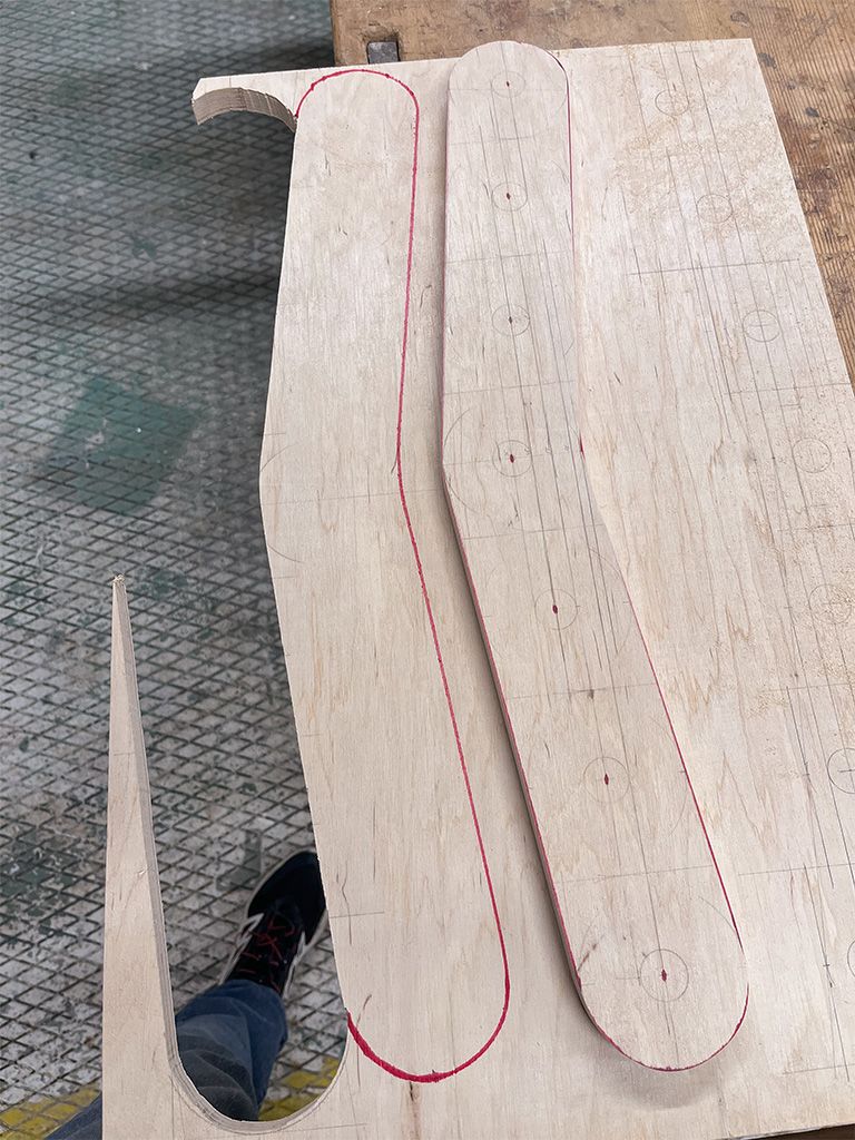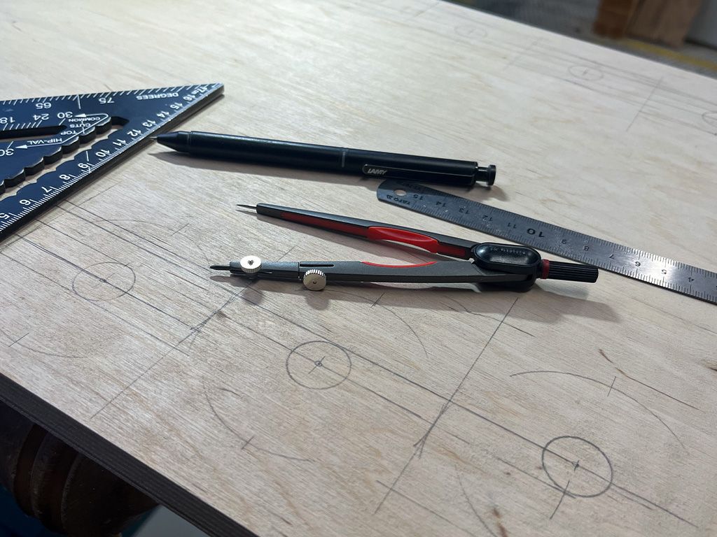 Although the initial CAD sketches looked promising, transferring the plans onto the actual wood felt strangely off. Trusting my instincts, I kept the geometric logic but adjusted the spacing parameters on the fly. I'm discovering more and more how important it is for me to plan thoughtfully, yet still leave room for improvisation and intuitive choices.