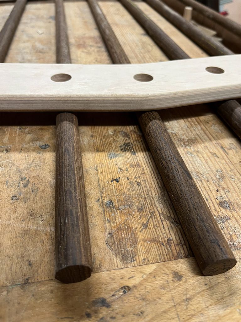 As always, there were unexpected challenges. Double-sided tape wasn’t strong enough to hold the pieces together for template routing, forcing me to improvise with screws that doubled as very handy centre markers. And when one oak rod snapped due to a hidden knot, the spare piece I instinctively bought saved the day—even presenting me with an opportunity to test whether PVA glue will bond to heat-treated oak.