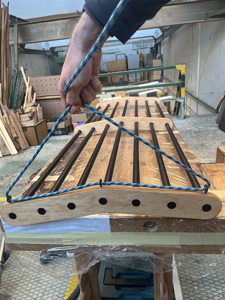 Sanding the rods was something I dreaded initially, but building a simple jig around an inverted orbital sander turned a tedious task into a surprisingly efficient one. Hours into the process, I realised why the smell seemed so oddly familiar: heat-treated oak first smells like something freshly baked, then immediately like some very luxurious whiskey. That sensory discovery alone made the tedious sanding feel worthwhile.