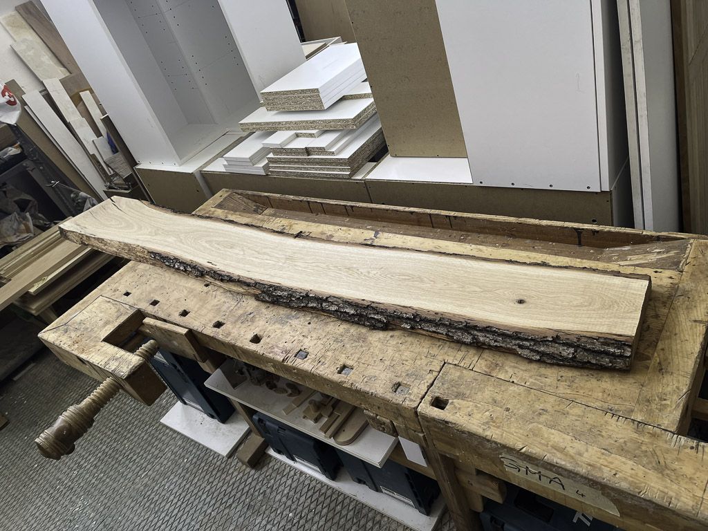 At the lumberyard, I stumbled upon an oak slab with a striking live edge. It wasn’t part of the original plan, but the moment I saw it, I knew I had to keep that raw, organic contour. It meant extra work and custom solutions, but it also promised a chance to make something truly mine.