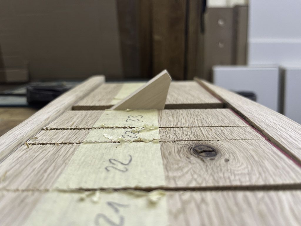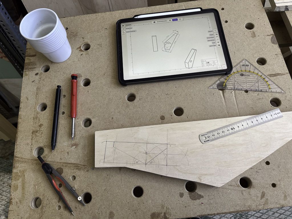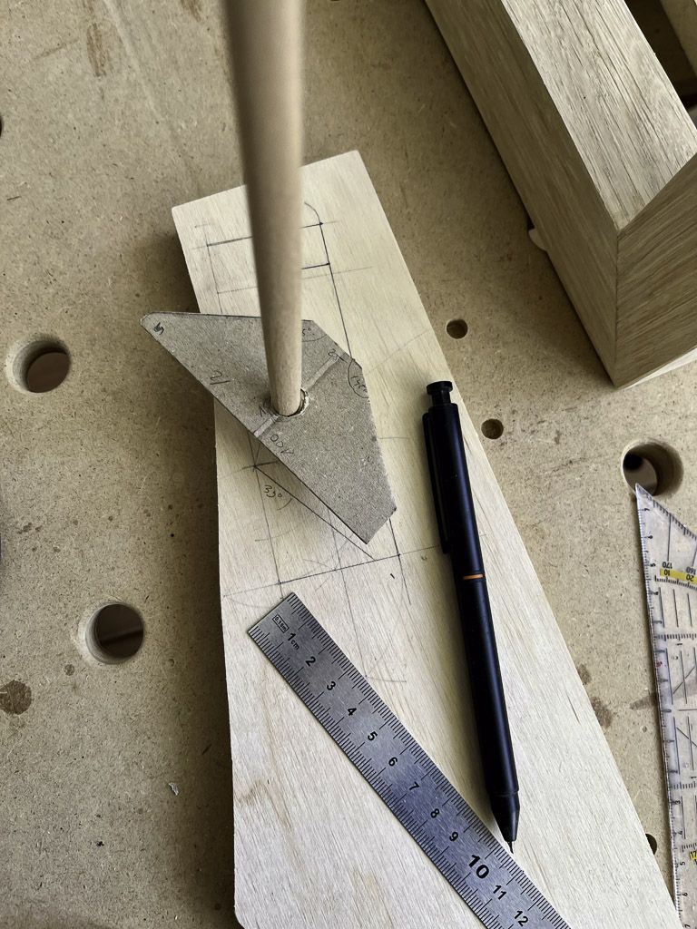 The hinge system was its own adventure. Before committing to oak, I started with real CAD but later I turned to another flavour of CAD that stands for Cardboard Aided Design. Prototyping the folding motion with cardboard, then refining it in plywood, gave me the confidence to move on to solid wood.